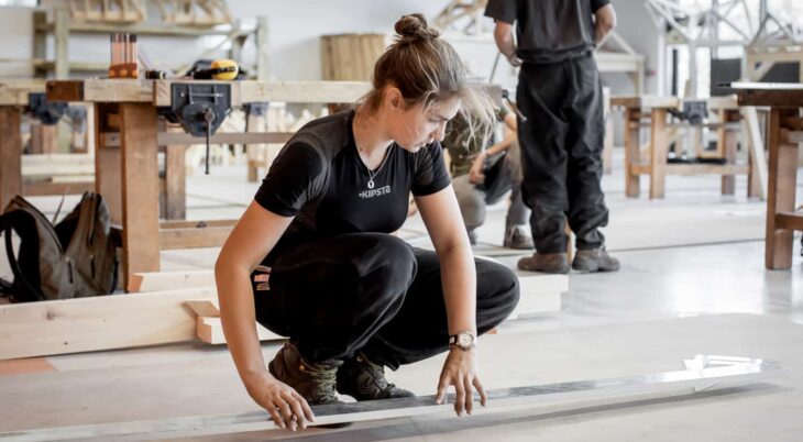 Dans le cadre de notre Bachelor Design d’Espace, Mobilier & Micro-Architecture, les étudiants de l première à la troisième année suivent chaque semaine des cours dans les ateliers des Compagnons du Devoir et du Tour de France, à Lyon dans le quartier de Vaise. Les étudiants du Bachelor y suivent notamment des cours de menuiserie qui peuvent aller jusqu’à la marqueterie.