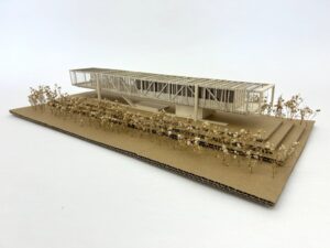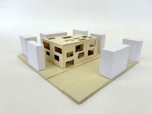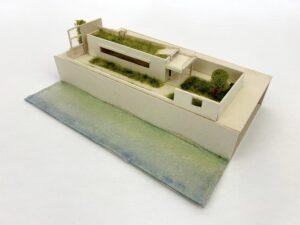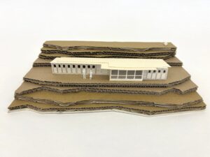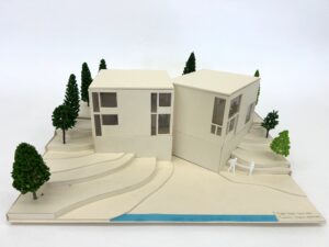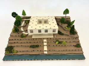 En atelier de conception, les étudiants de 2ème année du Bachelor Design d’Espace, Mobilier et Micro-Architecture ont pris comme point de départ un exercice de représentation dont la finalité est la création d’une maquette. L’objet architectural représenté — en général, une architecture d’habitation — est dans un premier temps un élément d’étude pour analyser et comprendre les enjeux de l’organisation des espaces selon leur vocation d’origine. Les maquettes correspondent à des architectures contemporaines situées dans différents pays, et pensées par des architectes de renom comme Le Corbusier, Jean Prouvé, Tadao Ando, Sou Fujimoto, ou le duo d’architectes japonais SANAA. Les maquettes sont représentées également avec leur environnement proche car le lieu d’implantation de ces architectures est un élément pris en compte lors du travail de conception notamment pour envisager le type de rapport entre intérieur et extérieur.