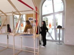 Depuis le 2 décembre dernier, une exposition de travaux des étudiants des classes préparatoires en architecture est présentée au forum de MADE iN Sainte-Marie Lyon. Installée sur une structure conçue et montée par les étudiants eux-mêmes, l’exposition présente différentes réalisations de maquettes portant sur des projets en architecture, mais également agencement et design d’espace et mobilier. Lors de la dernière Journée Portes Ouvertes en début du mois de décembre, les étudiants ainsi que les intervenants et responsables de formation ont échangé avec les visiteurs sur la sélection de travaux, la finesse de réalisations de maquettes et la diversité des projets. L’exposition qui comprend également des planches et dessins explicatifs de différents projets sont accrochés aux murs ; ils donnent un aperçu assez juste des différents enseignements dispensés dans la formation et aident les étudiant à se projeter concrètement dans la poursuite des études en école d’architecture.