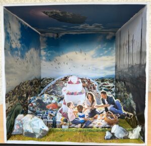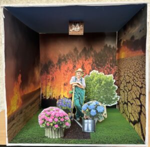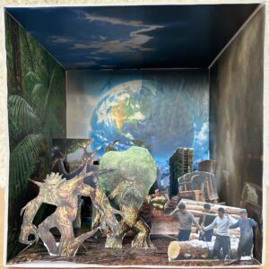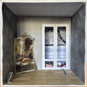 Dans le cadre des cours Expression plastique et sémiologie, les étudiants en 1ère année du Bachelor en Design d’Espace, Mobilier et Micro-Architecture et de la classe Prépa en architecture ont réalisé des cubes contenant un monde singulier. Il s’agit d’un exercice type de composition et représentation dont la thématique était totalement libre. Quelques conditions formelles étaient à respecter : présence de personnages humains réalisant des actions dans un cadre défini, parois internes recouvertes entièrement afin de donner une cohérence au lieu représenté, introduction d’un bouleversement d’échelle. Les étudiants se sont focalisés naturellement sur des sujets qui préoccupent leur génération, d’autres ont évoqué quelques traits absurdes qui caractérisent notre époque avec ironie et humour.
