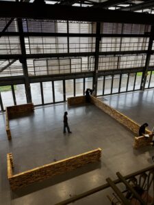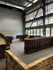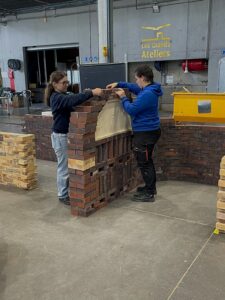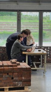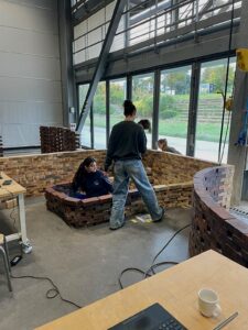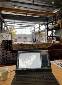 Les étudiants de 2ème année du Bachelor en Design d’Espace, Mobilier et Micro-Architecture ont réalisé un workshop aux Grands Ateliers de Villefontaine. Ils ont exploré l’application des outils numériques, (Rhinoceros et Grasshopper) dans un exercice de construction à échelle 1 à partir de la modélisation 3D. L’objectif était de travailler avec la brique, en expérimentant sa mise en forme et son agencement dans des structures complexes. Une attention particulière a été portée sur le travail de la double courbure, en cherchant à comprendre comment gérer les variations d’inclinaison et les ajustements nécessaires à ce type de géométrie. Le logiciel Grasshopper leur a facilité la création et la manipulation des formes 3D avec précision et souplesse. Avec des logiciels de réalité augmentée, les étudiants ont pu visualiser les étapes d’assemblage des murs à double courbure, offrant une compréhension concrète du processus constructif et des enjeux liés à la mise en œuvre. C’est grâce à l’utilisation des outils numériques qu’ils ont pu mener à bien la conception complète d’un bar.